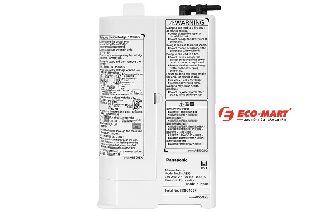 1. Thiết kế và cấu tạo máy tạo kiềm Panasonic TK-AB50-ZEX.