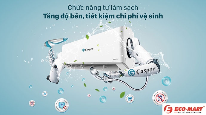 Khi chọn chức năng iClean điều hòa Casper 1 chiều inverter 18.000btu TC-18IS36, ngay lập tức điều hòa sẽ tự động kích hoạt chế độ tự làm sạch trong vòng 20 phút với 5 bước: