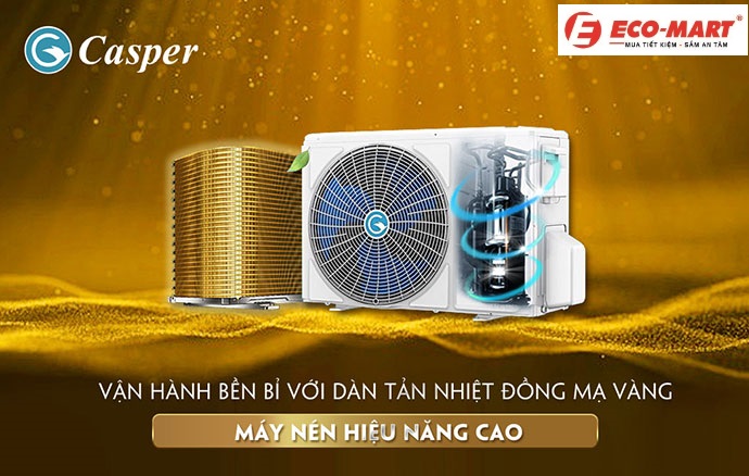 Điều hòa Casper 1 chiều inverter 18.000btu TC-18IS36 được trang bị dàn tản nhiệt đồng mạ vàng. Lớp mạ vàng giúp tăng khả năng chịu đựng các tác nhân ăn mòn như: Nước muối, mưa, các chất ăn mòn khác…, đẩy lùi sự sinh sôi của vi khuẩn và làm tăng hiệu năng trao đổi nhiệt cũng như tuổi thọ của sản phẩm.