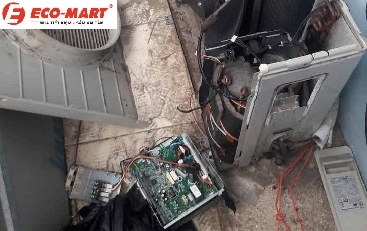 Bảng mạch điều khiển trên dàn nóng bị lỗi.