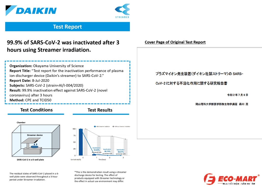 - Tác dụng vô hiệu hóa 99.9% vi khuẩn: Công nghệ Streamer loại bỏ đến 99.9% Novel Corona virus (SARS-CoV-2), Corona virus chuột A59 (M HV-A59) chỉ trong 3 giờ. Nhiều thử nghiệm khác chứng minh công nghệ Streamer có hiệu quả với 12 loại virus và 7 loại nấm mốc khác nhau.