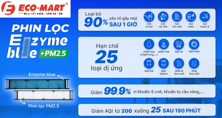 2. Tấm lọc Enzyme Blue kết hợp lọc bụi mịn PM 2.5 trong không khí.