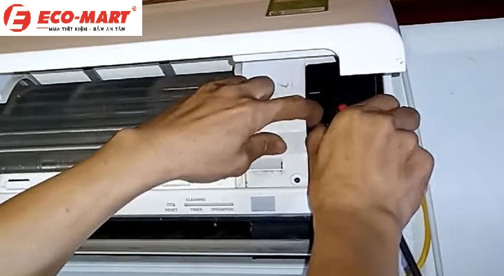Các bạn tắt Aptomat của điều hòa để ngắt nguồn điện trước. rồi dùng tua vít tháo mặt nạ của mặt lạnh điều hoà ra. Sau đó các bạn kiểm tra dây nguồn nối từ cảm biến đến mạch điều khiển, nếu bị đứt thì các bạn nối lại, hoặc không bị đứt thì các bạn rút đầu dây ra cắm lại là được.
