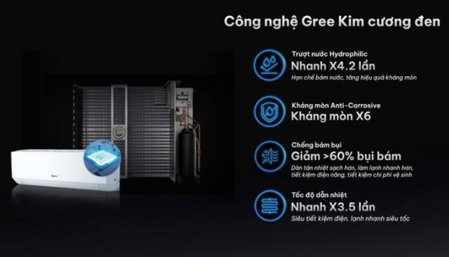 2. Dàn tản nhiệt phủ kim cương đen – bền hơn gấp 6 lần.