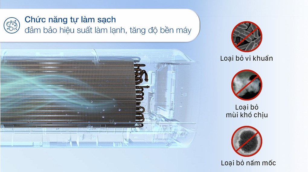Điều hòa LG V13WIN1 12000BTU không chỉ nổi bật với khả năng kết nối wifi mà còn được trang bị chức năng tự làm sạch dàn lạnh độc đáo, giúp nâng cao chất lượng không khí trong không gian lắp. Chức năng này giúp V13WIN1 loại bỏ vi khuẩn, nấm mốc và các tác nhân gây dị ứng khác, đảm bảo không khí mà bạn hít thở luôn sạch sẽ và an toàn cho sức khỏe bạn và gia đình.