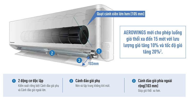 Bên cạnh đó, cánh đảo gió Big Flap có thiết kế rộng và dài, giúp hơi lạnh lan tỏa xa và đều khắp phòng, tránh hiện tượng góc mát – góc nóng, từ đó tạo cảm giác dễ chịu nhanh chóng.