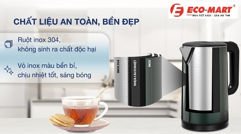 So với nhiều mẫu ấm khác trên thị trường sử dụng inox thông thường, SHD1389 nổi bật với chất liệu inox 304 – loại inox cao cấp không chỉ đảm bảo độ bền mà còn an toàn cho sức khỏe. Chất liệu này không sản sinh chất độc hại khi đun sôi, đồng thời dễ dàng vệ sinh, giữ cho sản phẩm luôn sáng bóng.