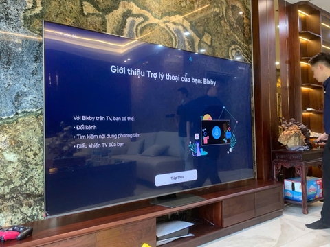 Trong quá trình lắp đặt, kỹ thuật viên của Eco-Mart đã cẩn thận điều chỉnh và hướng dẫn khách hàng cài đặt đầy đủ các ứng dụng giải trí, cũng như kích hoạt thành công tính năng trợ lý ảo Bixby. Điều này giúp người dùng dễ dàng điều khiển TV thông qua giọng nói và trải nghiệm sự tiện ích mà sản phẩm mang lại.