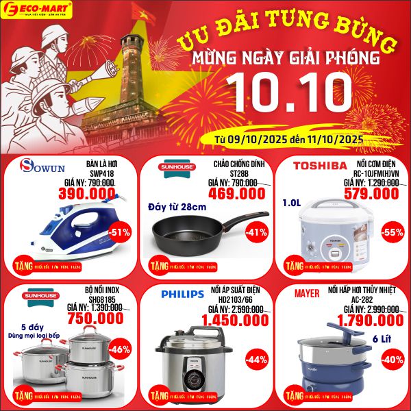 ✨🇻🇳 ECO-MART TƯNG BỪNG KHUYẾN MẠI – MỪNG NGÀY GIẢI PHÓNG THỦ ĐÔ 10/10 🇻🇳✨ 📅 Thời gian: Từ 09/10/2025 đến 11/10/2025