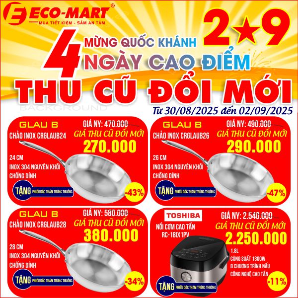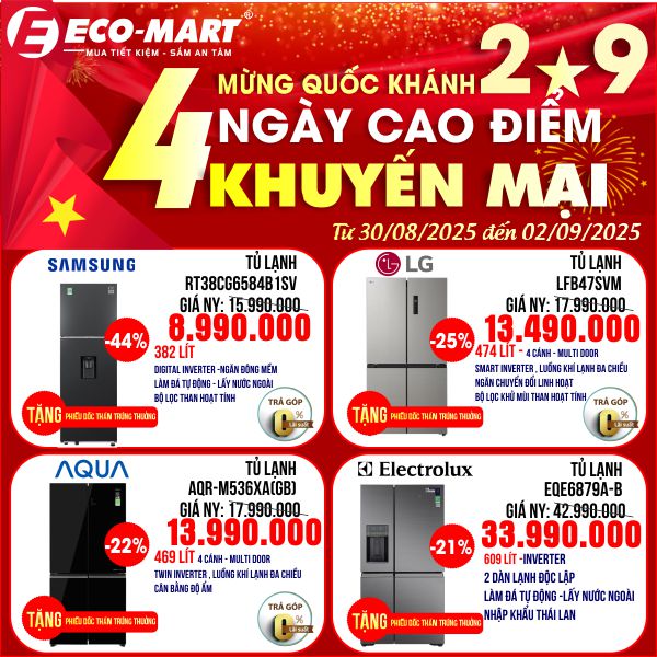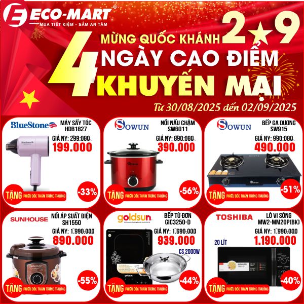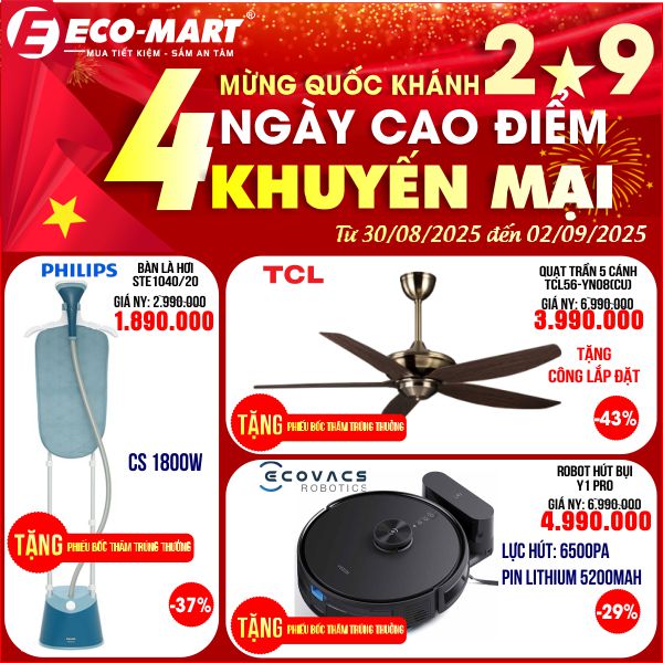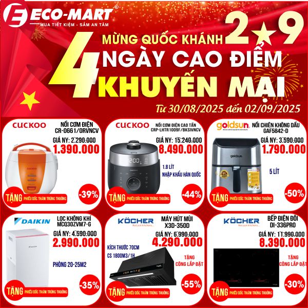 ECO-MART ƯU ĐÃI KHUYẾN MẠI MỪNG 8/3 từ 07/03 đến 09/03/2025 Thứ Năm, 06/03/2025 Makerting Eco Mart Viết bình luận của bạn Gửi thông tin Danh mục VIDEO CẬP NHẬT TIVI - LOA TỦ LẠNH ĐIỀU HÒA MÁY GIẶT ĐỒ GIA DỤNG LAPTOP/MÁY TÍNH GHẾ MASSAGE TỦ ĐÔNG/TỦ MÁT MÁY RỬA BÁT Tin tức nổi bật Quy định đổi trả hàng hóa tại Siêu thị điện máy ECO-MART 09/10/2025 ✨🇻🇳 ECO-MART TƯNG BỪNG KHUYẾN MẠI – MỪNG NGÀY GIẢI PHÓNG THỦ ĐÔ 10/10 🇻🇳✨ 📅 Thời gian: Từ 09/10/2025 đến 11/10/2025 06/10/2025 🌟Sẵn Sàng Cùng TCL – Rực Rỡ Hành Trình Vinh Quang🌟 03/10/2025 🎉 Ưu đãi hết ý – Chốt tủ rinh quà cùng LG tại Eco-mart 🎉 27/09/2025 Eco-Mart Tự hào đạt chứng nhận Đại lý Xuất sắc Ferroli 2025 19/09/2025 Eco-Mart Đối tác Chiến lược Gree 2025, khẳng định uy tín phân phối điều hòa Gree chính hãng cùng dịch vụ chuyên nghiệp 17/09/2025 Eco-Mart Đối tác Chiến lược 2025 của AQUA, khẳng định uy tín phân phối sản phẩm AQUA chính hãng cùng dịch vụ chuyên nghiệp. 17/09/2025 Eco-Mart Đại lý Daikin 2025 – khẳng định uy tín phân phối điều hòa Daikin chính hãng, dịch vụ lắp đặt và bảo hành chuyên nghiệp toàn quốc. 17/09/2025 Eco-Mart được vinh danh Electrolux Trusted Partner 2025 – khẳng định uy tín phân phối sản phẩm Electrolux chính hãng, dịch vụ chuyên nghiệp và tận tâm tại Việt Nam. 17/09/2025 🔥 FLASH SALE 9.9 – SALE SẬP SÀN 🔥 từ 09.09.2025 đến 11.09.2025 08/09/2025 🎉 MỪNG QUỐC KHÁNH – NGÀY HỘI GIẢM GIÁ CỰC ĐÃ TẠI ECO-MART! Từ 30/08/2025 đến 02/09/2025 27/08/2025 Ưu đãi đặc biệt khi mua Tivi Sony – Nhận ngay quà tặng giải trí đỉnh cao! 25/08/2025 Mua Tivi LG tặng Tivi, E voucher Urbox, nhận gói ứng dụng giải trí hấp dẫn, VOD THÁNG 7 tại Điện máy Eco-mart 24/08/2025 Ưu đãi giải trí cực hot khi mua Tivi Samsung tháng 8/2025 23/08/2025 🎉 SIÊU SALE 8.8 – KHUYẾN MÃI TO, KHÔNG LO VỀ GIÁ 🎉 ⏰ Từ 08.08 đến 10.08.2025 07/08/2025 Bạn có đang uống nước thực sự sạch? Khám phá công nghệ lọc RO trong máy lọc nước Hòa Phát HPN656 01/08/2025 Panasonic NN-GD35QBYUE có gì đặc biệt? Lò vi sóng kết hợp nướng đa năng bạn nên sở hữu 01/08/2025 Đánh giá nồi cơm điện cao tần Cuckoo CRP-LHTR0609F: Cơm ngon chuẩn Hàn ngay tại nhà 01/08/2025 Vì sao máy lọc nước đang trở thành thiết bị không thể thiếu trong mọi nhà? 29/07/2025 Bếp từ đơn Sanaky SNK-2302BT: Nấu nhanh, an toàn, phù hợp gia đình nhỏ và sinh viên 29/07/2025 Tags Đại lý Daikin 2025 Điều hòa Daikin chính hãng Eco-Mart Daikin Trusted Dealer Eco-Mart đối tác Daikin Mua điều hòa Daikin tại Eco-Mart Siêu thị điện máy Eco-Mart