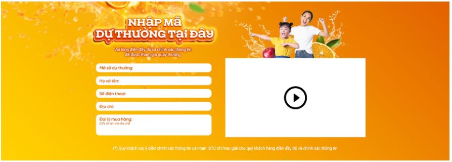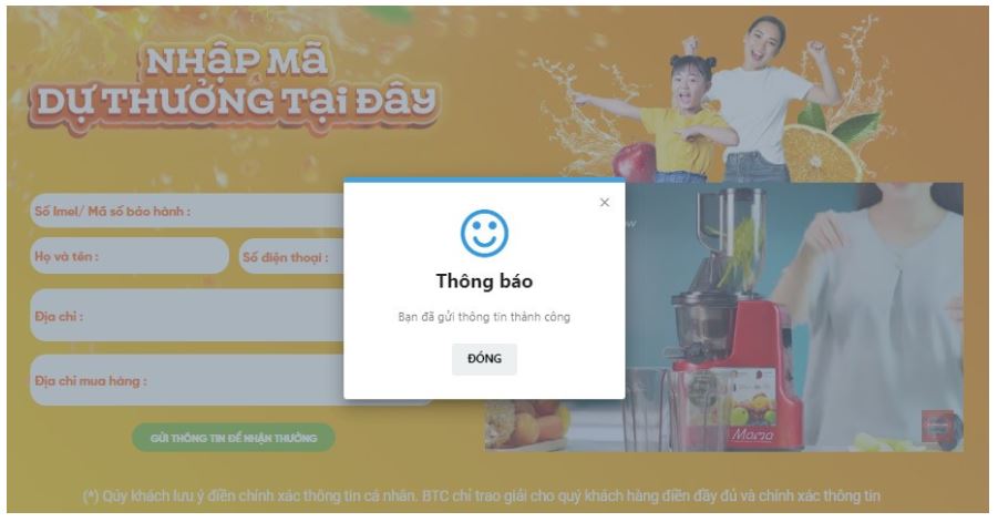 • Trường hợp 1: Khách hàng cung cấp “mã số dự thưởng” và thông tin hợp lệ, ngay lập tức màn hìnhsẽ hiện thông báo “Bạn đã gửi thông tin thành công”