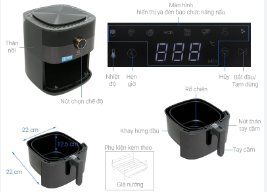 Ngoài ra, nồi chiên có bảng điều khiển cảm ứng thông minh, dễ thao tác, phù hợp cho mọi thành viên trong gia đình.