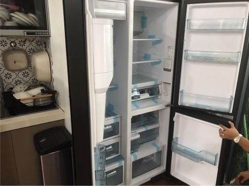Anh Sơn tại chung cư Tràng An Complex đã đặt mua chiếc tủ lạnh Hitachi side by side 3 cửa, màu gương đen với dung tích 569L (Model: R-MX800GVGV0(GBK)) tại Eco-Mart. Đây là mẫu tủ lạnh sang trọng và hiện đại, được nhiều khách hàng ưa chuộng. Sản phẩm được giao đến và đặt tại phòng bếp nhà anh Sơn.