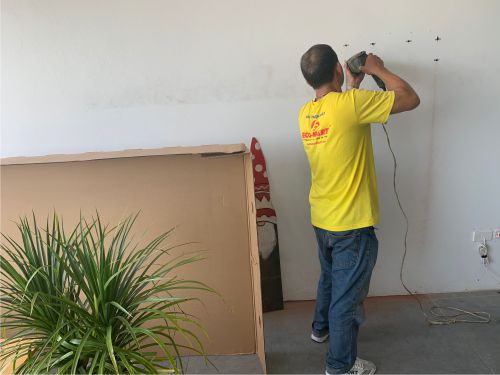 - Quá trình lắp đặt giá treo hoàn thành sau 30 phút, tivi được treo lên tường chắc chắn và an toàn.