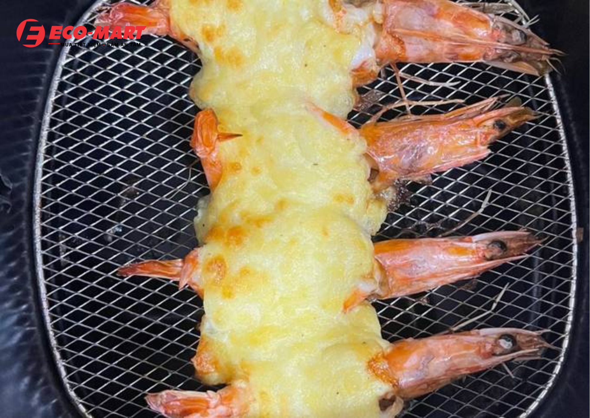 Tôm nướng phô mai - đây là món cực ngon chế biến với nồi chiên không dầu, ngoài tôm nướng phô mai thì chị em còn có thể làm món tôm nướng bơ tỏi, tôm nướng sa tế cũng hấp dẫn không kém.