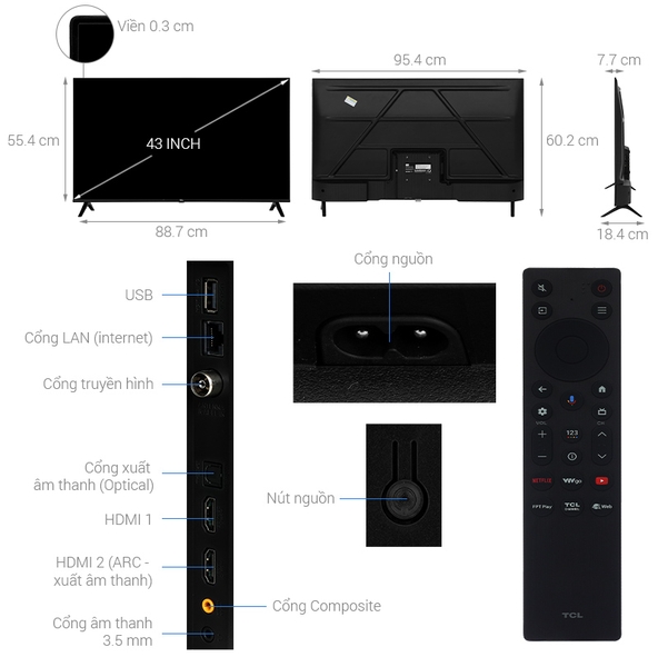 Google Tivi QLED TCL 43S5K là sự kết hợp giữa: