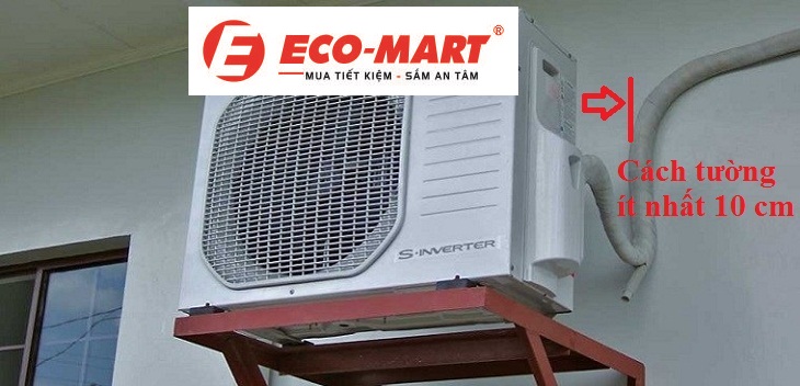 - + Khoảng cách giữa cục nóng và tường ít nhất 10cm.