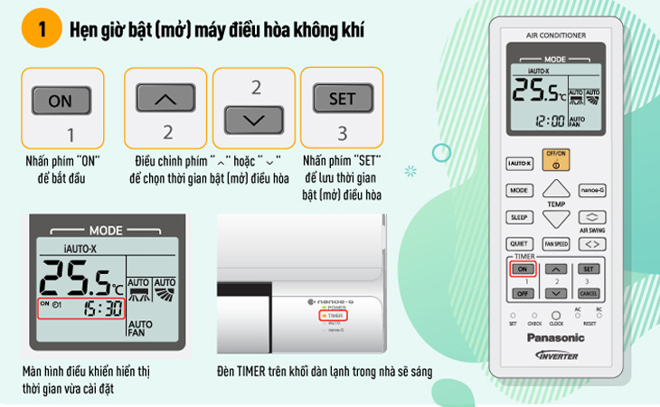 2. Các bước hẹn giờ trên điều hòa Panasonic.