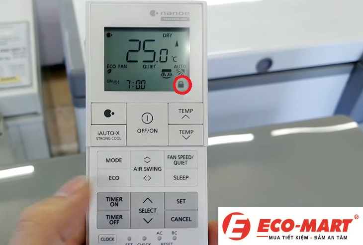 1. Cách nhận biết điều khiển của điều hòa Panasonic đang bị khóa.