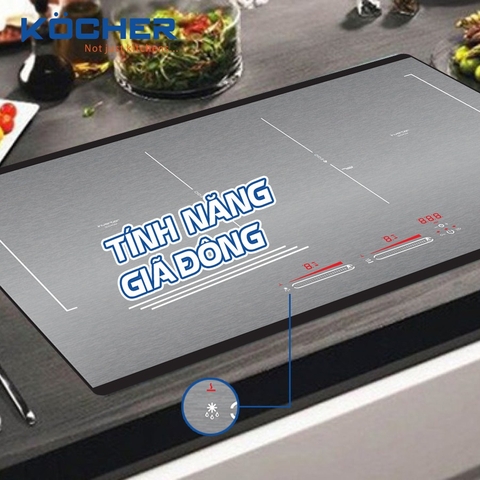 - Kocher DIB4-888MI sở hữu tính năng rã đông tiện lợi, được biểu thị bằng một biểu tượng đặc trưng trên thanh slider bên trái của bếp.