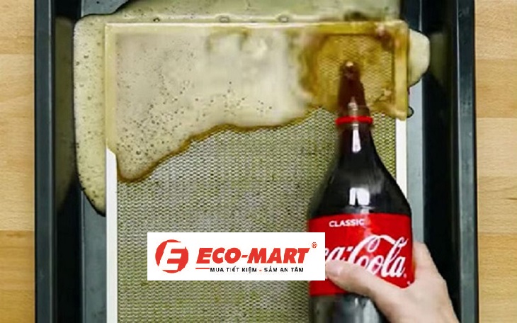- Để vệ sinh lưới lọc bằng CocaCola, bạn cần ngâm lưới lọc của hút mùi trong CocaCola khoảng 30 phút để làm sạch dầu mỡ.
