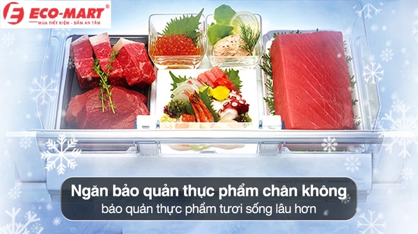 Ngoài ra, ngăn chân không cho phép lựa chọn chế độ cài đặt với nhiệt độ lý tưởng khoảng -1 đến +1℃ tùy theo thực phẩm được bảo quản.