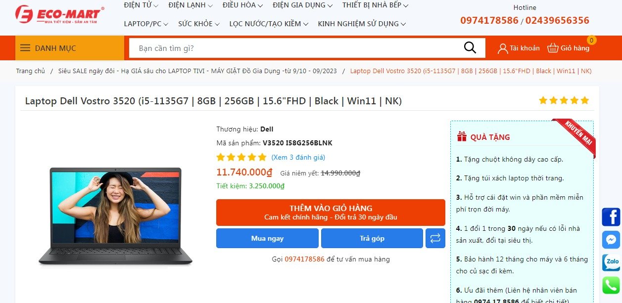 Trong tháng 9, Điện máy Eco-Mart có chương trình giảm giá sốc cho laptop DELL với rất nhiều mẫu laptop giá cực tốt cho các bạn mua hàng.