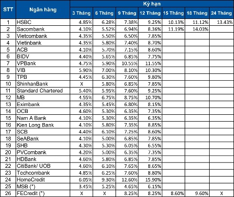 - Bảng phí chuyển đổi trả góp mà khách hàng phải chịu :