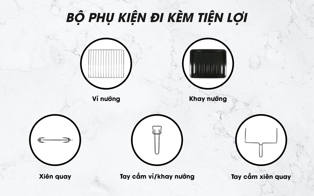 Nướng trên dưới cùng quạt đảo nhiệt và xoay