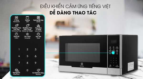 - Công suất mạnh mẽ: vi sóng 800W, nướng 1000W làm chín nhanh, tiết kiệm thời gian và điện năng.