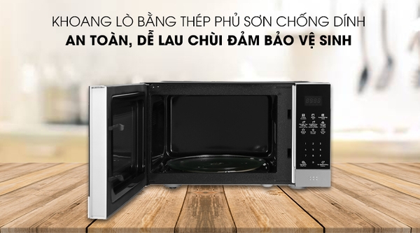 Lò vi sóng có nướng với khoang lò bằng thép phủ sơn chống dính nấu nướng thực phẩm an toàn, dễ lau chùi đảm bảo vệ sinh