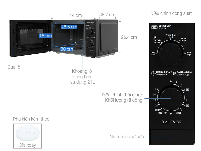 Lò vi sóng Sharp R-211TV-BK 21 lít với công suất hoạt động ổn định, bảng điều khiển nút vặn dễ sử dụng, phù hợp với mọi đối tượng, là sản phẩm của thương hiệu uy tín, xứng đáng để bạn đầu tư cho căn bếp gia đình.