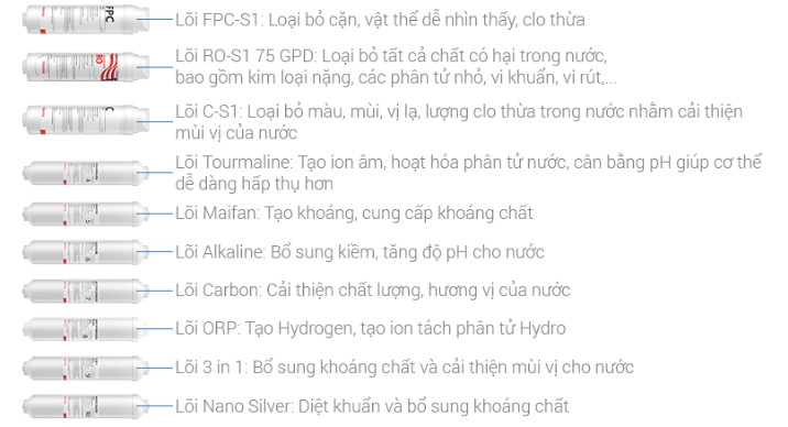 Máy lọc nước RO nóng nguội Toshiba TWP-H2396SVN(W) 10 lõi - Chức năng lõi lọc