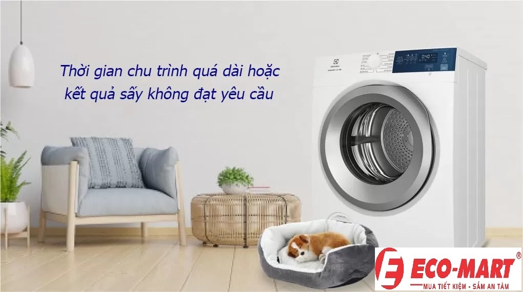 5. Thời gian chu trình sấy quá dài hoặc kết quả sấy quần áo không đạt yêu cầu