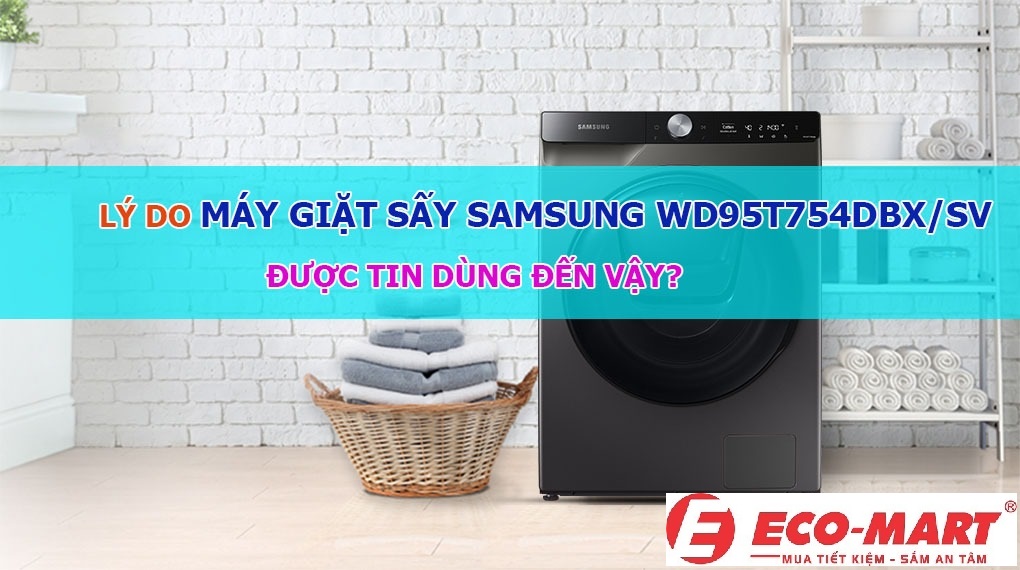 Lý do máy giặt sấy Samsung WD95T754DBX/SV được người sử dụng tin dùng nhiều như vậy là gì ? Các bạn hãy cùng Điện Máy Eco-Mart đi tìm hiểu tính năng công dụng của sản phẩm và lý do qua bài viết dưới đây nhé !