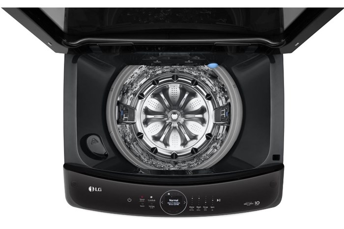 - Máy giặt LG này là dạng máy giặt lồng đứng - cửa trên thiết kế đơn giản, màu đen chủ đạo thích hợp với nhiều phong cách nội thất khác nhau.