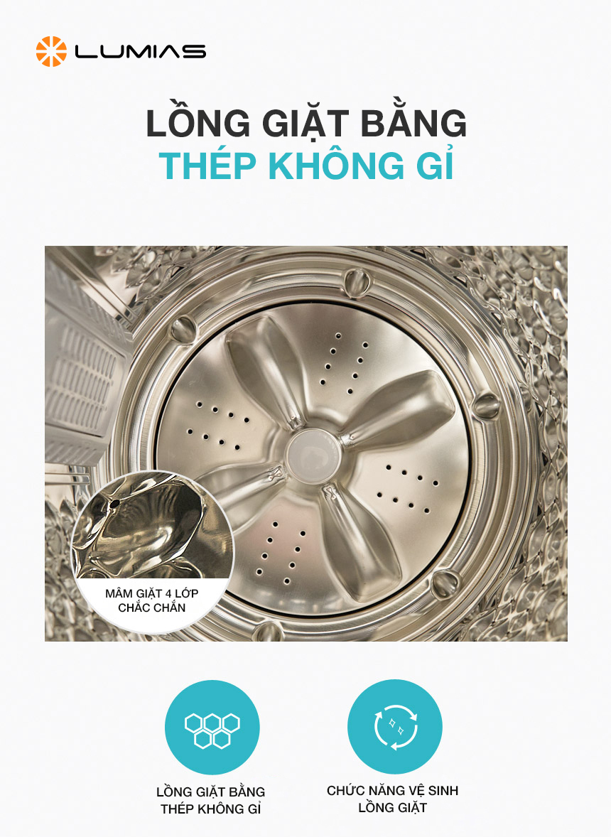 Chất liệu  Lồng giặt bằng inox không gỉ