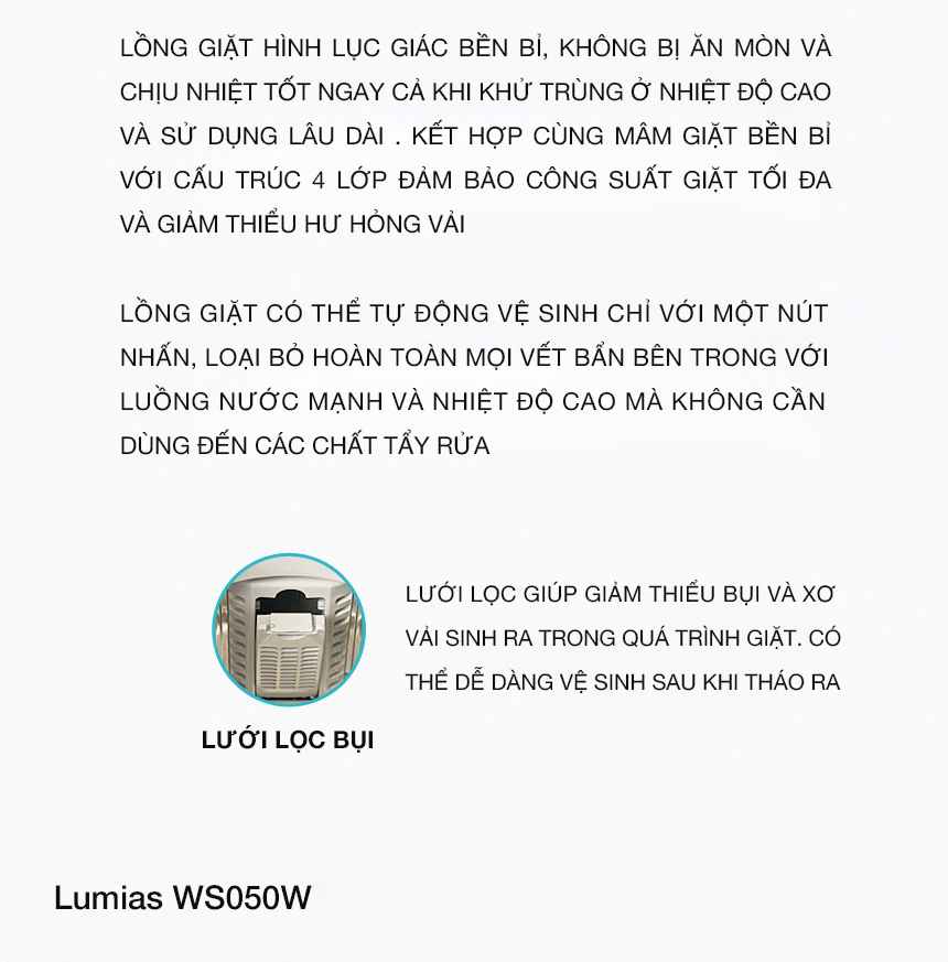 Tên sản phẩm Máy giặt mini Lumias WS050W