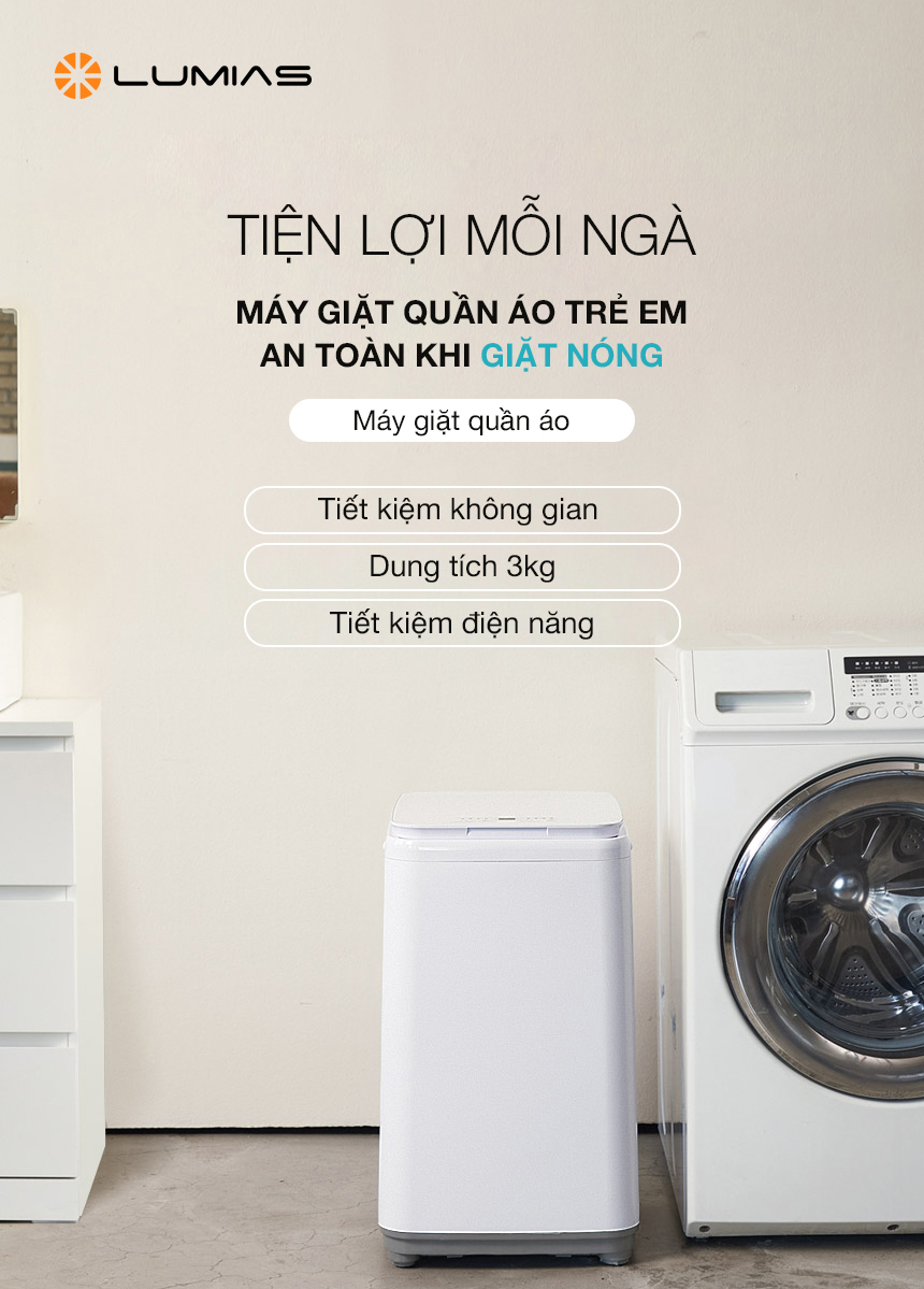 Máy giặt mini Lumias WS050WH 3kg, 1500w, giặt nhiệt độ cao