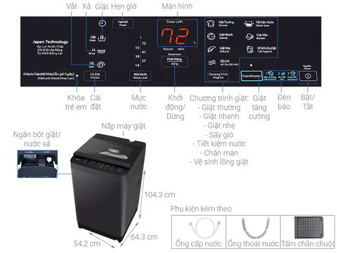 Máy giặt này còn được trang bị chế độ tự vệ sinh lồng giặt, giúp loại bỏ vi khuẩn và cặn bột giặt bám lại sau mỗi lần giặt, đảm bảo lồng giặt luôn sạch sẽ và an toàn cho sức khỏe của cả gia đình.