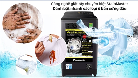 Công nghệ giặt tẩy chuyên biệt StainMaster trên máy giặt Panasonic 9 Kg NA-F90A9BRV có 3 chương trình hoạt động vết bẩn được thiết lập sẵn gồm: Lưu hương - bùn đất - nước sốt.