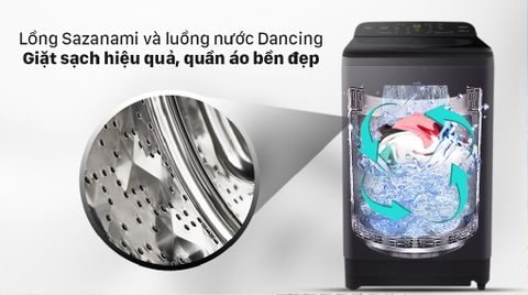 Lồng giặt Sazanami kết hợp với luồng nước Dancing Water Flow giúp giặt sạch hiệu quả, bảo vệ quần áo bền đẹp