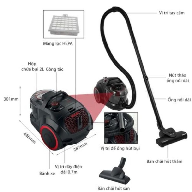 Máy được trang bị động cơ Bosch thế hệ mới kết hợp cùng công nghệ AirCircle hiện đại, tạo ra lực ly tâm cực mạnh để phân tách bụi và không khí hiệu quả. Điều này không chỉ tăng cường khả năng làm sạch mà còn giúp hạn chế tình trạng tắc nghẽn trong khoang chứa bụi – một trong những nguyên nhân chính gây giảm lực hút ở các dòng máy thông thường.