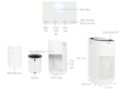 - Phạm vi lọc dưới 45m² cho lượng gió thổi ra lên tới 329.3 m3/h giúp lọc sạch không khí sau mỗi 30 phút.