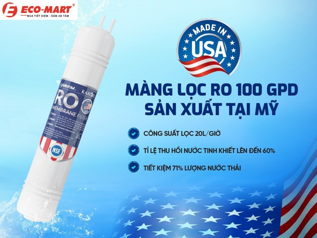 - Màng lọc RO nhập khẩu từ Mỹ giúp nước đạt tiêu chuẩn uống trực tiếp, không cần phải đun sôi, đảm bảo an toàn tuyệt đối cho sức khỏe.