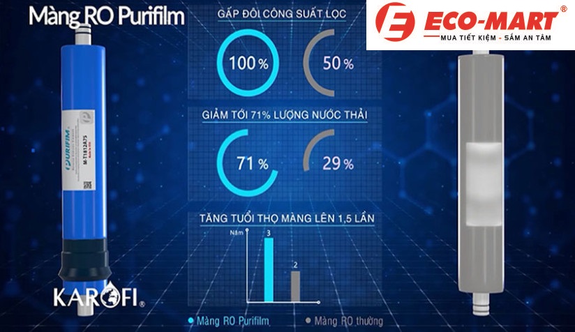 3. Màng lọc Ro tăng gấp đôi công suất lọc.
