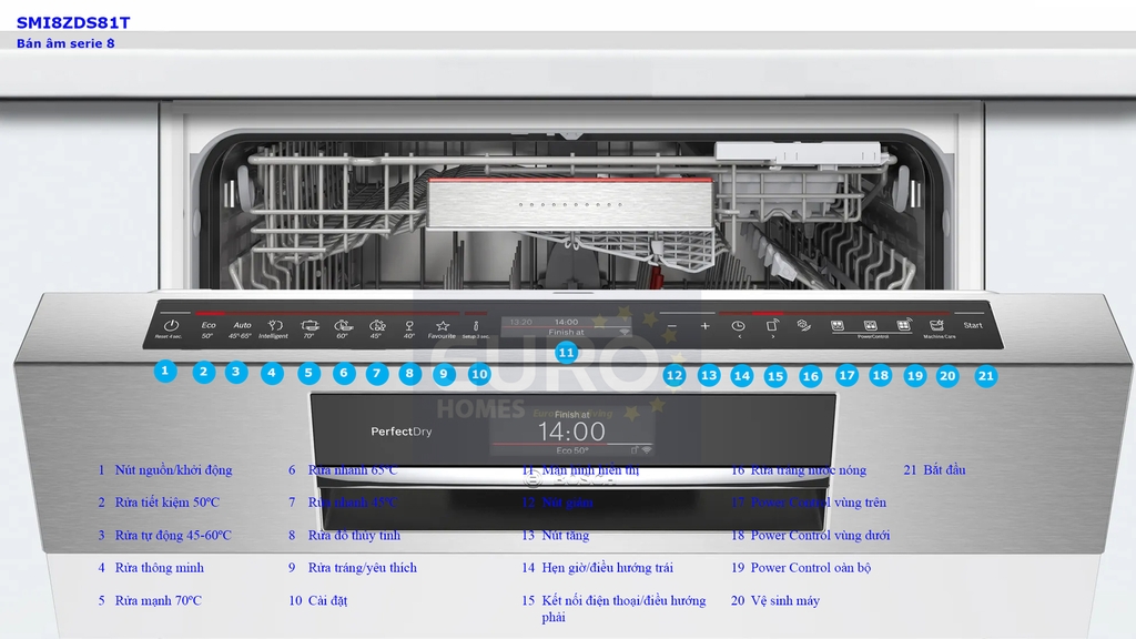 Chương trình thông minh này sử dụng dữ liệu phản hồi từ người dùng để cải thiện hiệu quả rửa sau mỗi chu trình. Thông qua ứng dụng Home Connect, bạn có thể đánh giá kết quả làm sạch, thời gian và mức tiêu thụ năng lượng. Từ đó máy sẽ tự điều chỉnh để phù hợp hơn cho các lần sau. Ngoài ra, bạn còn được đề xuất các chế độ tiết kiệm điện, nước hoặc rút ngắn thời gian rửa. Tất cả đều dựa trên thói quen sử dụng thực tế.