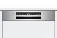 Máy rửa bát bán âm Bosch SMI4ECS14E hoạt động êm ái, hạn chế tiếng ồn với công suất 2400W, rửa được lượng bát đĩa cho 3 - 4 bữa ăn Việt trong 1 lần với lượng nước tiêu thụ khoảng 9.5 lít, cài đặt 6 chương trình rửa đa dạng, dùng an toàn với tính năng chống tràn Aquastop.