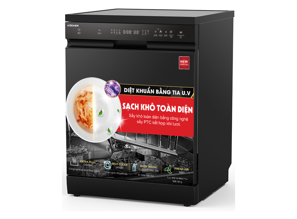 Máy rửa bát Köcher X15B PRO không chỉ rửa sạch mà còn mang đến những công nghệ tiên phong, giải quyết triệt để nỗi lo về bát đĩa ẩm mốc hay thiếu không gian sạch sẽ.