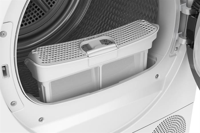 Không còn nỗi lo phải vệ sinh bộ lọc thủ công sau mỗi lần sấy. Công nghệ AutoClean của Bosch thay thế hoàn toàn bộ lọc tại cửa bằng hệ thống tự lọc tiên tiến. Sau mỗi chu trình sấy, máy sẽ tự động thổi các sợi vải, bụi và lông vào khoang chứa phía dưới thiết bị. Chúng sẽ được gom lại tại một ngăn đặc biệt và chỉ cần làm sạch sau khoảng 20 lần sấy, giúp tiết kiệm thời gian và công sức cho người dùng.